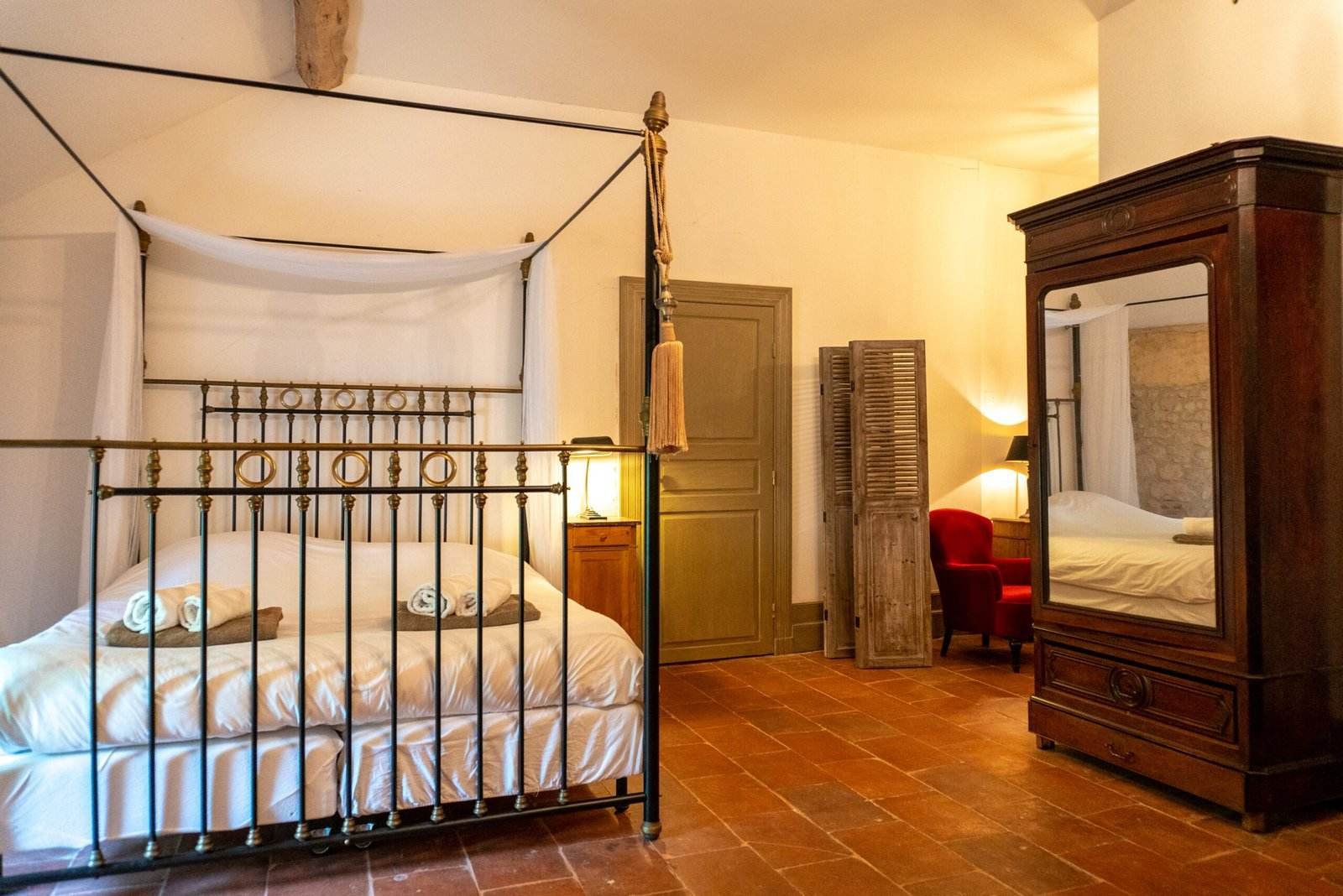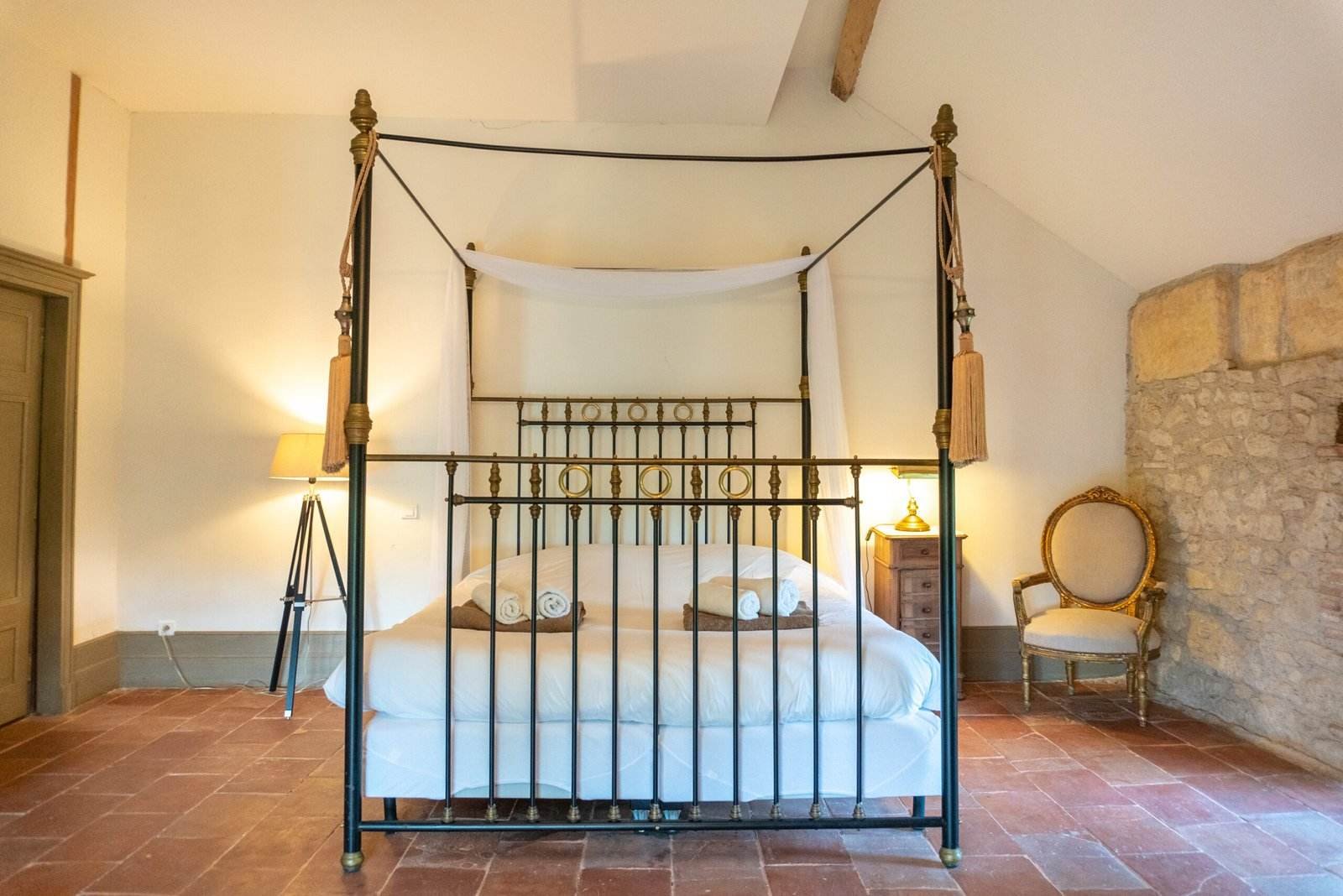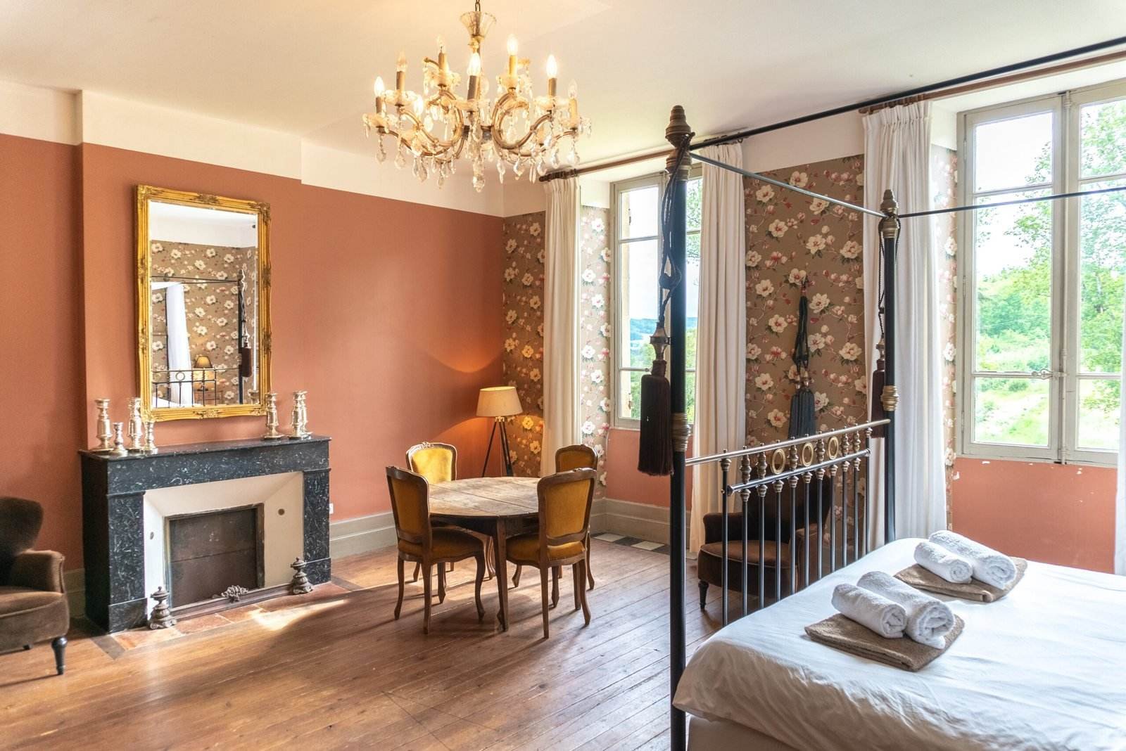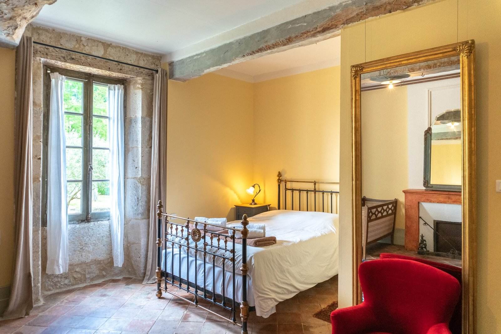 The château features 10 beautifully appointed bedrooms designed to combine comfort and character. For larger groups or added privacy, the nearby Pigeonniere—a charmingly renovated pigeon tower—offers three additional bedrooms, a rustic-style kitchen, and a cozy living room. This separate apartment adds flexibility to accommodate guests while maintaining a warm, intimate atmosphere.