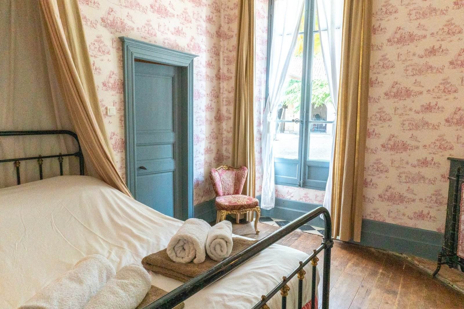 The kitchen and salon are accessible for guests with mobility issues. However, due to space limitations, the château does not have a fully wheelchair-adapted bathroom. For reference, here are the exact measurements to help you assess suitability: